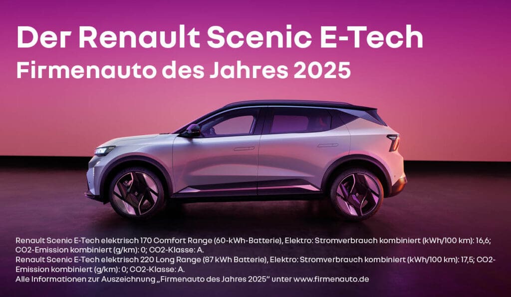 Der Renault Scenic E-Tech wurde zum Firmenauto des Jahres gewählt. In der Kategorie Elektrovan (Importwertung) überzeugt der Renault Scenic E-Tech elektrisch mit seiner Kombination aus geräumigen Platzverhältnissen, komfortabler Ausstattung und reichweitenstarkem Elektroantrieb. Nicht nur deshalb, ist das Modell perfekt für den dienstlichen sowie familiären Alltag, auf Kurz- und Langstrecke. Alle Informationen zur Auszeichnung „Firmenauto […]