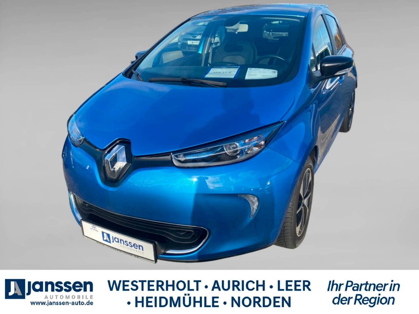 LIGHTNING-BLAU, Interieur Harmonie 01, Stoff, Ablagen - Ablagefächer in den vorderen u, Airbag: Anti Submarining Airbags in den, Airbag: Front-und Seitenairbags für Fahr, Anti-Blockier-System mit elektronischer, Außenspiegel elektrisch einstell- und be, Außenspiegel in Hochglanz-Schwarz, Berganfahrhilfe (Hill Start Assit), Bordcomputer Z.E. - zeigt die zurückgele, Bremsleuchte dritte, ECO Modus Reduzierung des Motordrehmomen, Elektronisches Stabilitätsprogramm (ESP), Fensterheber: elektrisch vorne und hinte, Geräuschsimulator Z.E. Voice, geschwindi, Getriebe: Direktantrieb, Heckscheibenheizung, Heckscheibenwischer, Isofix-Kindersitzbefestigung auf dem Bei, Kartentasche in der Beifahrerrückenlehne, Keycard Handsfree mit Zentalverrigelung, Kindersicherung hinten, Klimaautomatik, 1-Zone mit Kombifilter (, Kopfstützen (2) vorne integriert, Kopfstützen (3) hinten höhenverstellbar, Ladeanschluss MENNEKES Typ 2 in der Fahr, Ladekabel (6,5 m) mit IEC Typ 2 für Stan, Ladekabel mit Schuko-Stecker und EVSE (E, Ladesystem CHAMELEON CHARGER - Lademodi, LED-Tagfahrlicht, Lenkrad längs- und höhenverstellbar, Lenkrad und Schalthebelknauf in Leder, My Z.E. Connect Batterieinformation onli, My Z.E. Inter@ctive Programmierung der F, Paket: Easy-Paket - Einparkhilfe hinten, Polster: Stoff 'Schwarz', Radio '3D Sound by Arkamys' - 2 Tief- un, Range OptimiZEr. energiesparende 2- Krei, Reifen: Mobilitäts-Set - 12V-Kompressor, Reifendruckkontrolle, Renault R-Link Evolution Integriertes To, Räder: 16' Leichtmetallräder JETSTREAM -, Rückfahrkamera, Rücksitzlehne komplett (1/1) umklappbar, Seitenscheiben hinten und Heckscheibe st, Servolenkung, elektrisch, Sicherheitsgurte vorne höhenverstellbar, Sitze: Fahrer- und Beifahrersitz längsve, Sonnenblende auf Fahrer- und Beifahrerse, Steckdose 12 Volt in der Mittelkonsole, Tempopilot und Geschwindigkeitsbegrenzer, TFT Instrumententafel Z.E. - Batterieanz, Verglasung: Getönte Scheiben rundum, Vorheizung/ Vorkühlung des Innenraums -, Wegfahrsperre elektronisch, Standort: Renault Aurich, Ansprechpartner: Günther Wattjes, Kontakt: 04941 9910124, Order Nr.:824